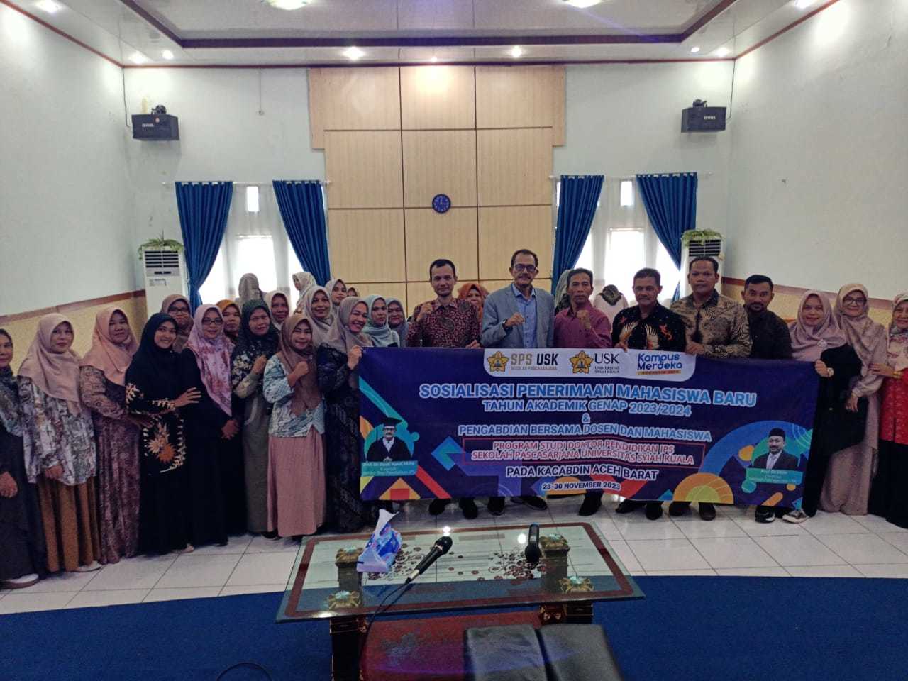 Rabu,29 November 2023 Program Studi Doktor Pendidikan IPS Sekolah Pascasarjana USK Laksanakan Sosialisasi Penerimaan Mahasiswa Baru TA.Genap 2023/2024 dan Pengabdian Kepada Masyarakat Bersama Dosen, Mahasiswa dan Alumni pada Kantor Cabang Dinas Pendidikan Aceh Barat.
