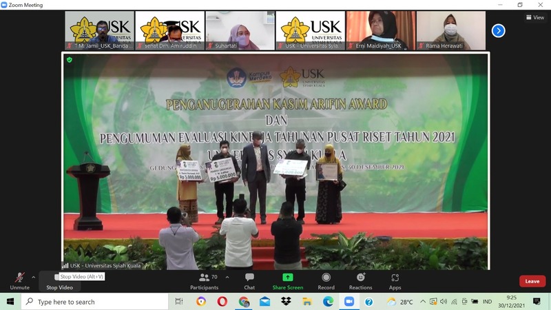Kamis, 30 Desember 2021., Ir. T.M. Zulfikar, MP, IPU, Mahasiswa Program Studi Doktor Pendidikan IPS PPs USK Raih Peanugerahan Kasem Arifin Award, dalam Kategori Pengelola dan Pembina Lingkungan Hidup. Rektor USK, Bapak Prof. Dr. Ir, Samsul Rizal, M.Eng, IPU ASEAN, Memberikan Penganugerah Kasim Arifin Award dan Pengumuman Evaluasi Kinerja Tahunan Pusat Riset USK 2021. Rektor berharap, semoga kita bisa belajar, terutama generasi muda dari perjuangan dan pengabdian serta keikhlasannya "Kasem Arifin" semasa hidupnya. Kemudian Bapak Rektor Juga Berpesan ke depan, agar semua Pusat Riset di Kampus USK berkategori A. Dan Rektor Juga Berharap kepada para ilmuwan USK untuk berpikir agar dapat Membuka Puslit Baru yang dibutuhkan masyarakat... Akhirnya, Bapak Rektor mengucapkan Selamat untuk para penerima anugerah itu, serta mohon do'a dan restu agar USK segera Menjadi PTN-BH. Semoga Allah Swt mudahkan segalanya. Aamiin3x, Yaa Rabbal Alamin...