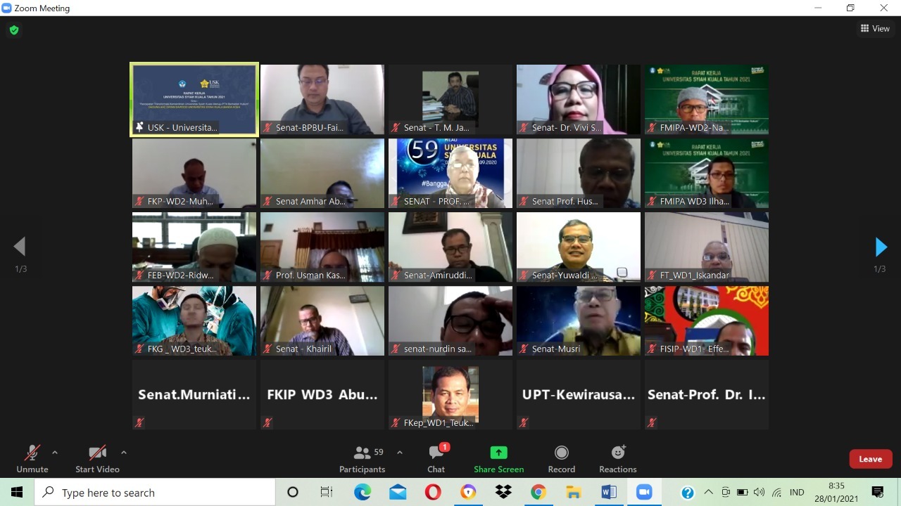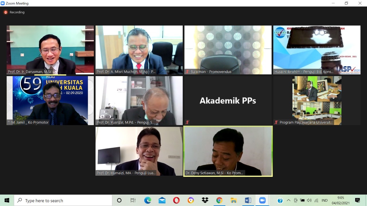 Kamis, 4 Februari 2021, Program Studi Doktor (S3) Ilmu Pendidikan Sosial Program Pascasarjana Universitas Syiah Kuala melaksanakan kegiatan sidang tertutup doktor. kegiatan ujian tertutup doktor ini diselenggarakan secara virtual dengan menggunakan aplikasi Zoom Meeting bertempat di Ruang Teleconference PPs Unsyiah.