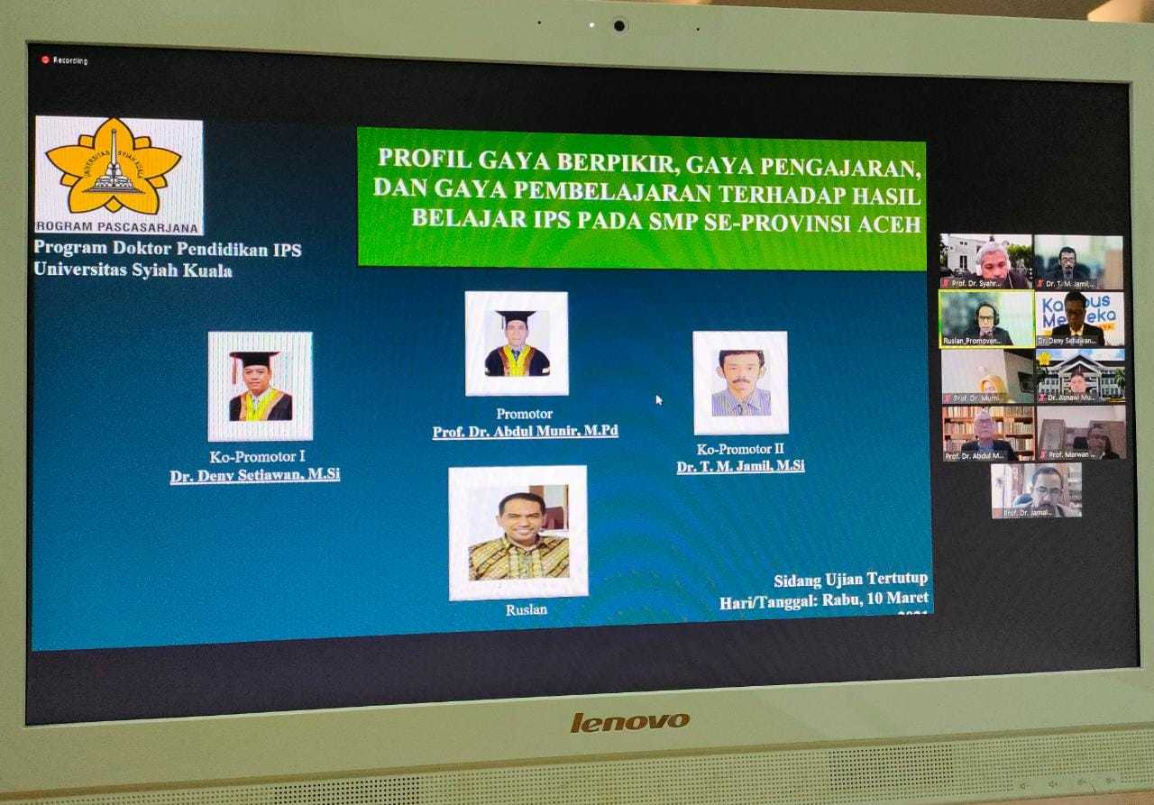 Selasa 10 Maret 2021, Program Studi Doktor (S3) Pendidikan IPS Program Pascasarjana Universitas Syiah Kuala melaksanakan kegiatan sidang tertutup doktor An. RUSLAN kegiatan ujian tertutup doktor ini diselenggarakan secara virtual Zoom bertempat di Ruang Teleconference PPs Unsyiah.