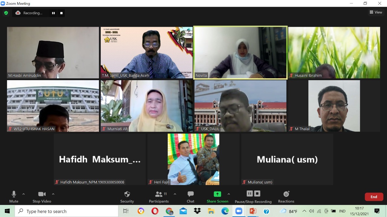 Program Studi Doktor pendidikan IPS Program Pascasarjana USK menyelenggarakan Seminar ProposalAn. Hafidh Maksum NPM.1909300050009.Pada Senin tanggal 13 Desember 2021 Pukul : 14.00 WIB s/d Selesai, bertempat di Program Pascasarjana Universitas Syiah Kuala secara daring dengan menggunakan aplikasi Zoom Meeting.
