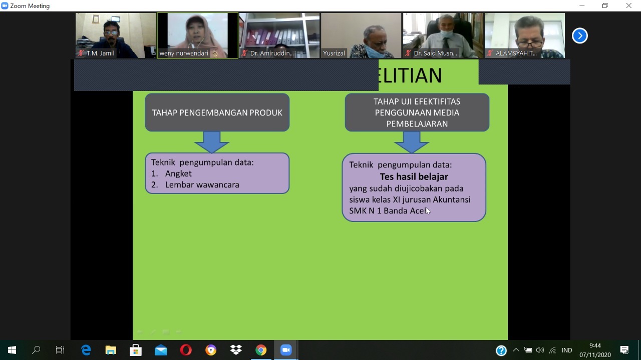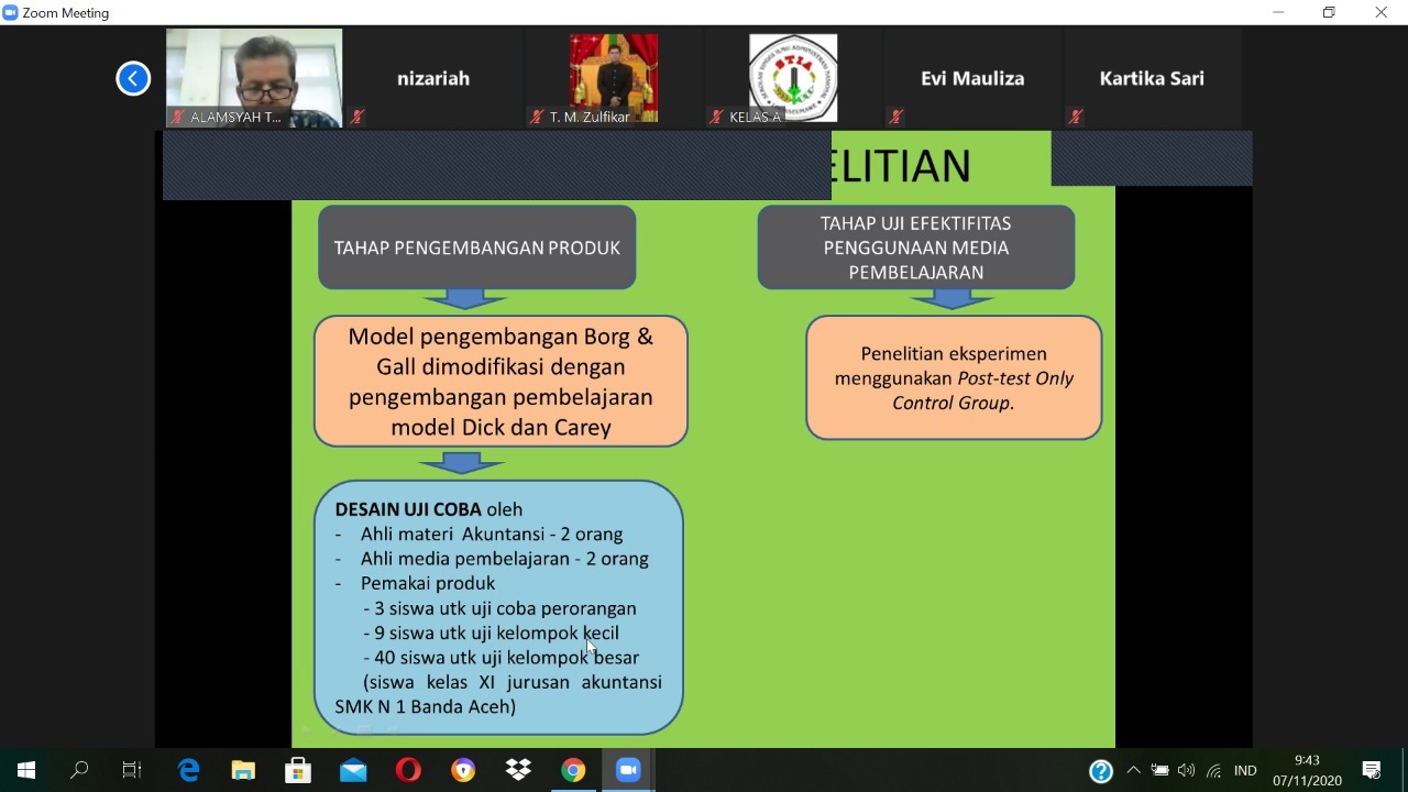 Weny Nurwendari mempresentasikan judul Proposal '' Pengembangan Media Pembelajaran Berbasis Video Dengan Menggunakan Komunikasi Daring (Dalam Jaringan) Sebagai Alternatif Pembelajaran Akuntansi"