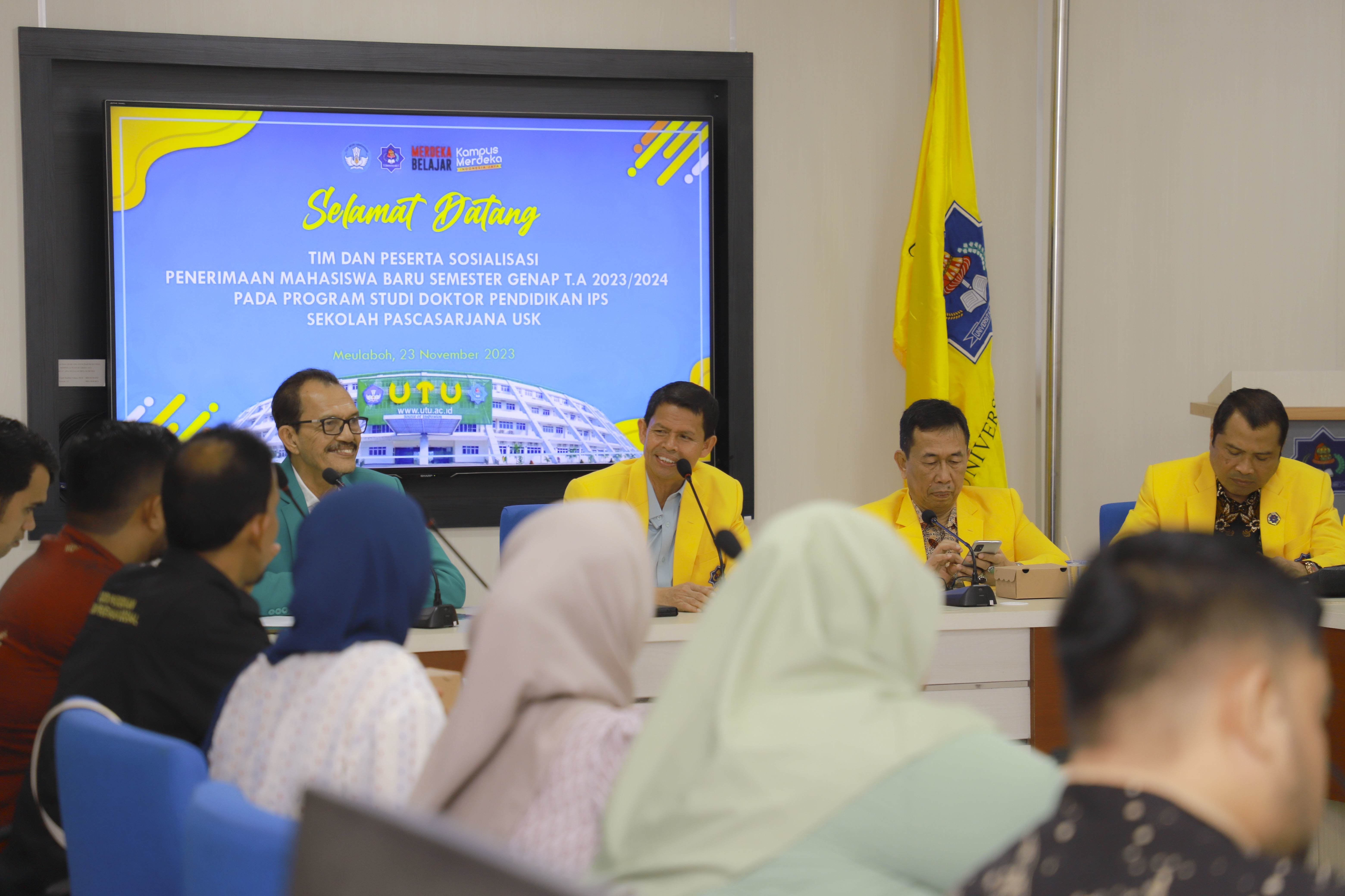 Kamis, 23 November 2023 Program studi Doktor Pendidikan IPS Sekolah Pascasarjana Sosialisasi Penerimaan Mahasiswa Baru Genab TA. 2023-2024 DPIPS Pada Universitas Teuku Umar,