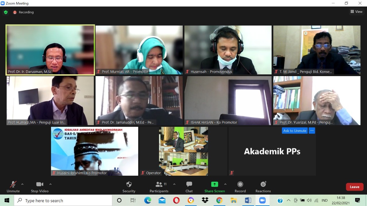 Selasa 22 Februari 2021, Program Studi Doktor (S3) Pendidikan IPS Program Pascasarjana Universitas Syiah Kuala melaksanakan kegiatan sidang tertutup doktor An. Husensah kegiatan ujian tertutup doktor ini diselenggarakan secara virtual Zoom bertempat di Ruang Teleconference PPs Unsyiah.
