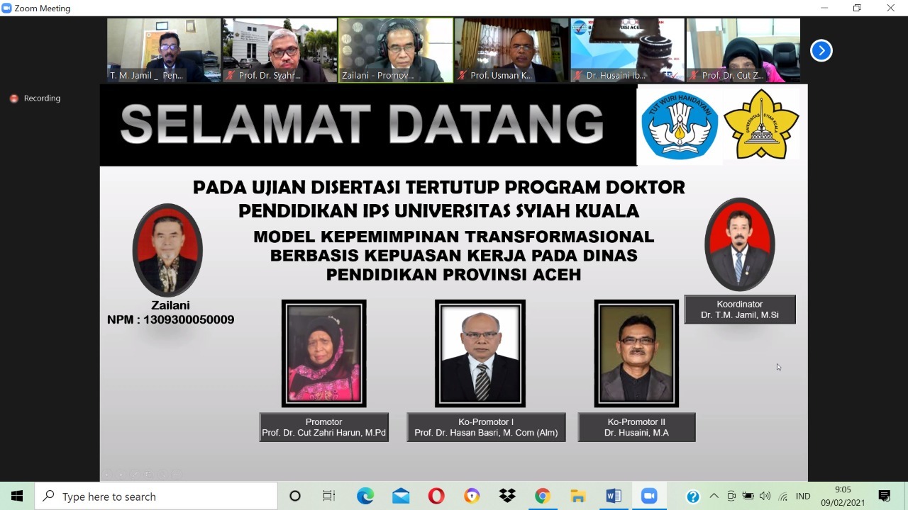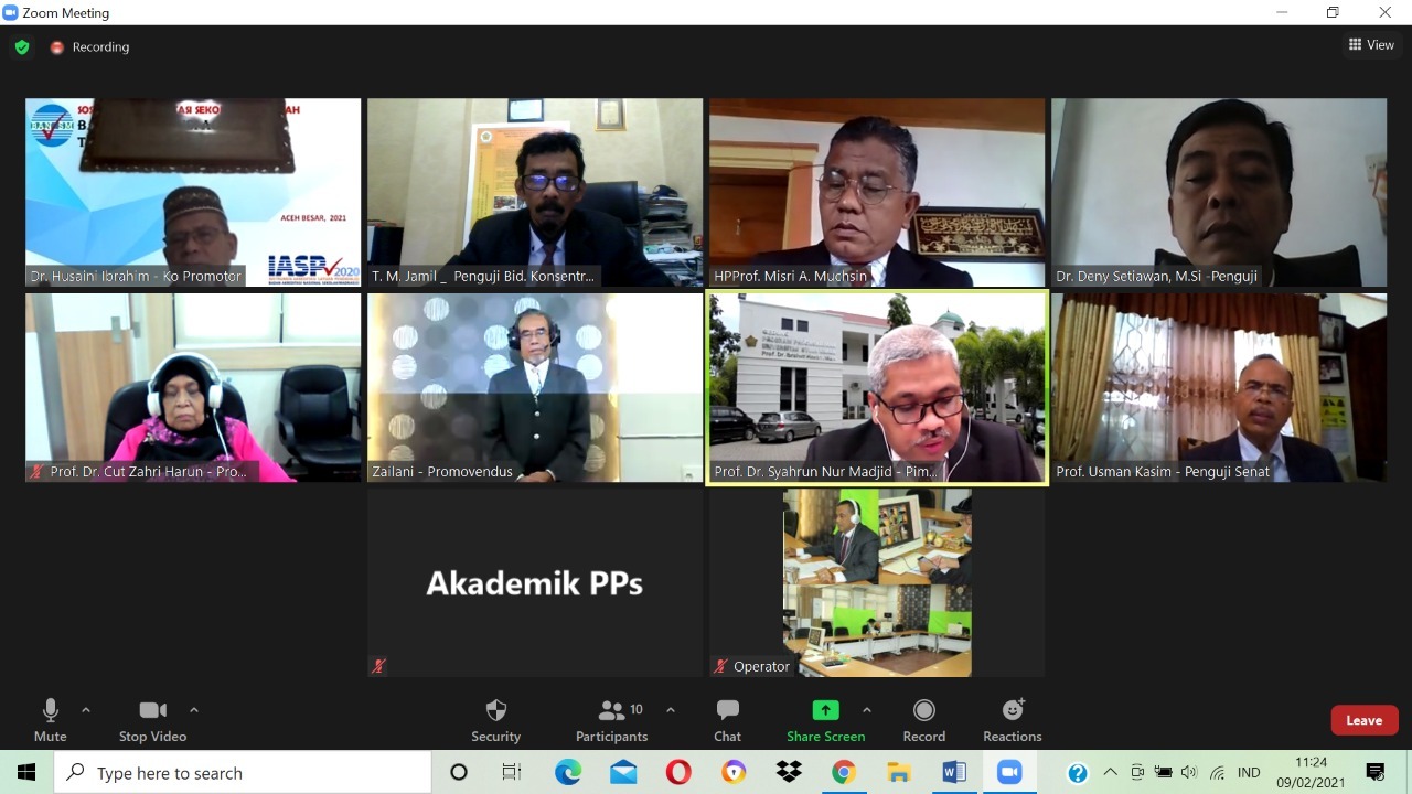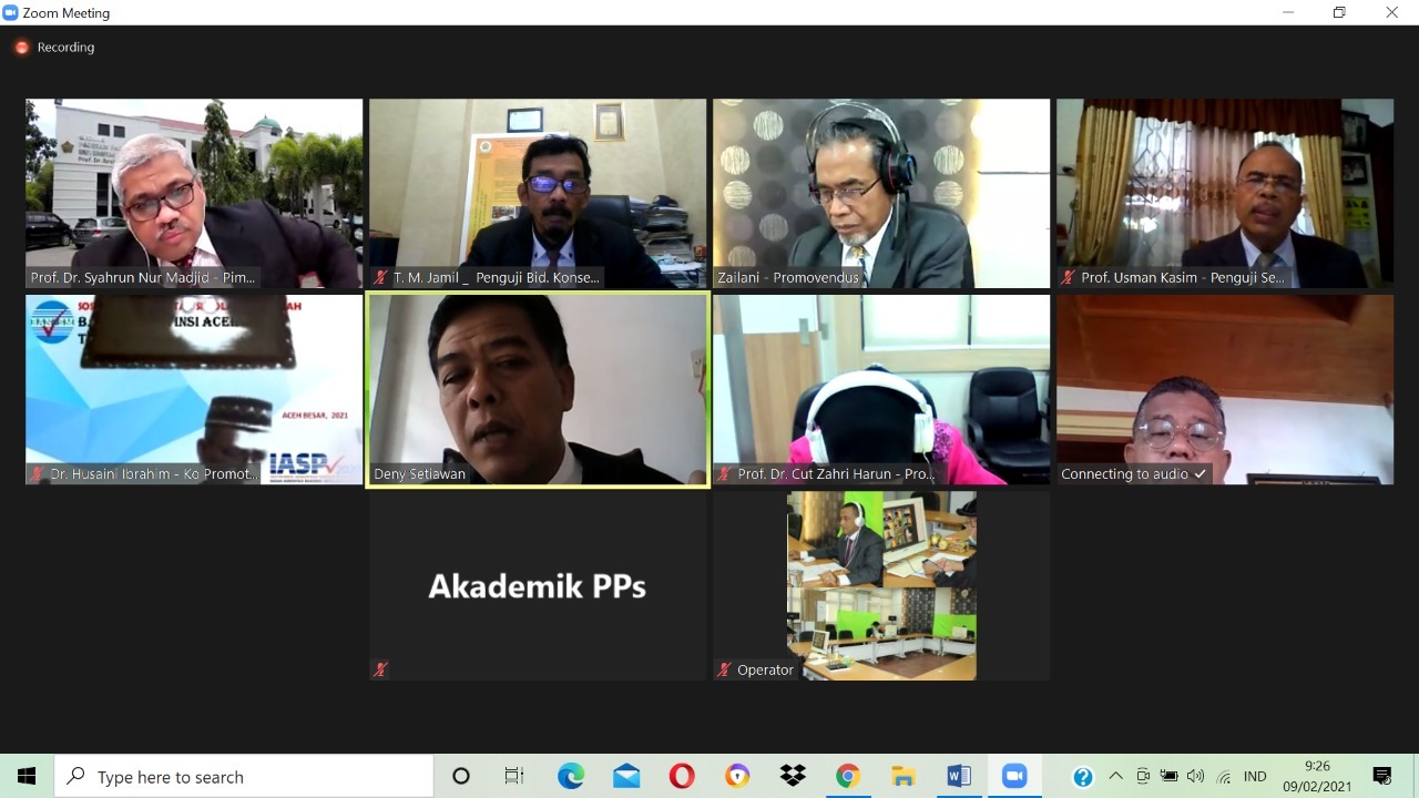 Selasa 9 Februari 2021, Program Studi Doktor (S3) Pendidikan IPS Program Pascasarjana Universitas Syiah Kuala melaksanakan kegiatan sidang tertutup doktor. kegiatan ujian tertutup doktor ini diselenggarakan secara virtual Zoom bertempat di Ruang Teleconference PPs Unsyiah.