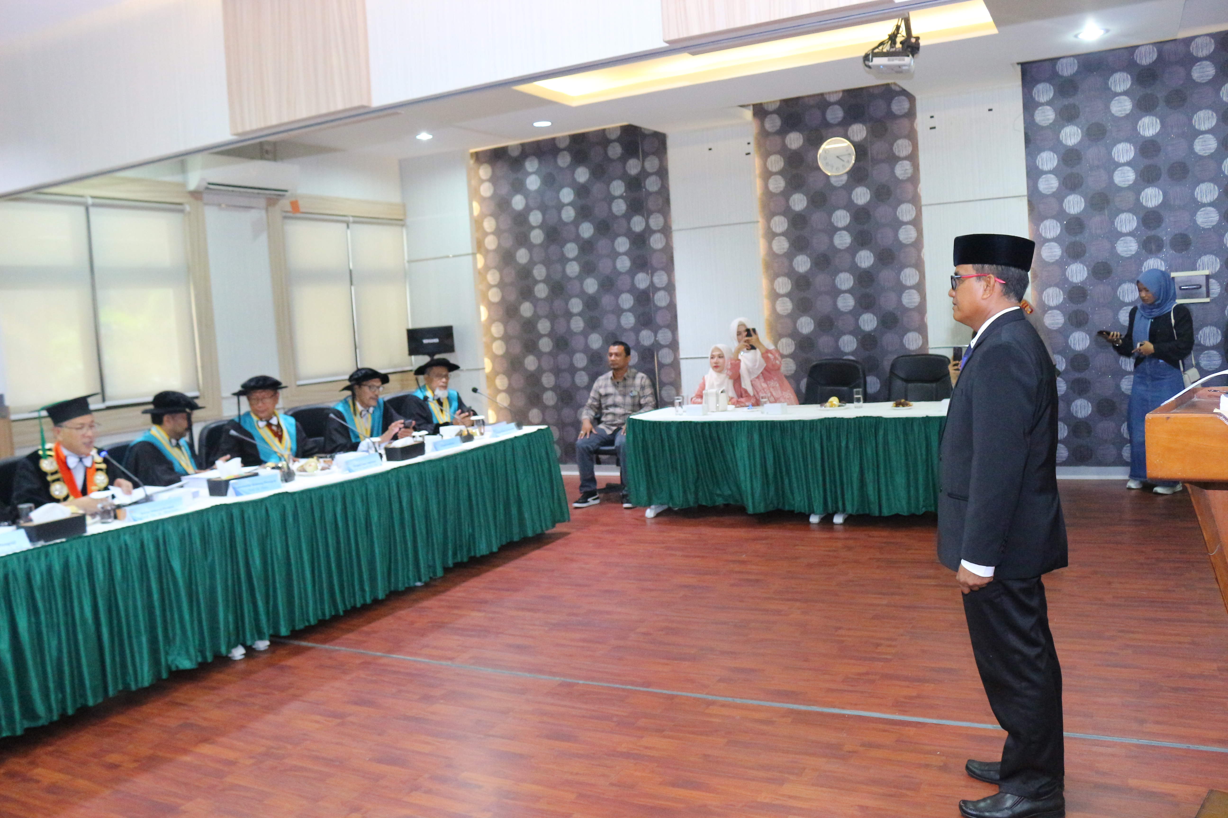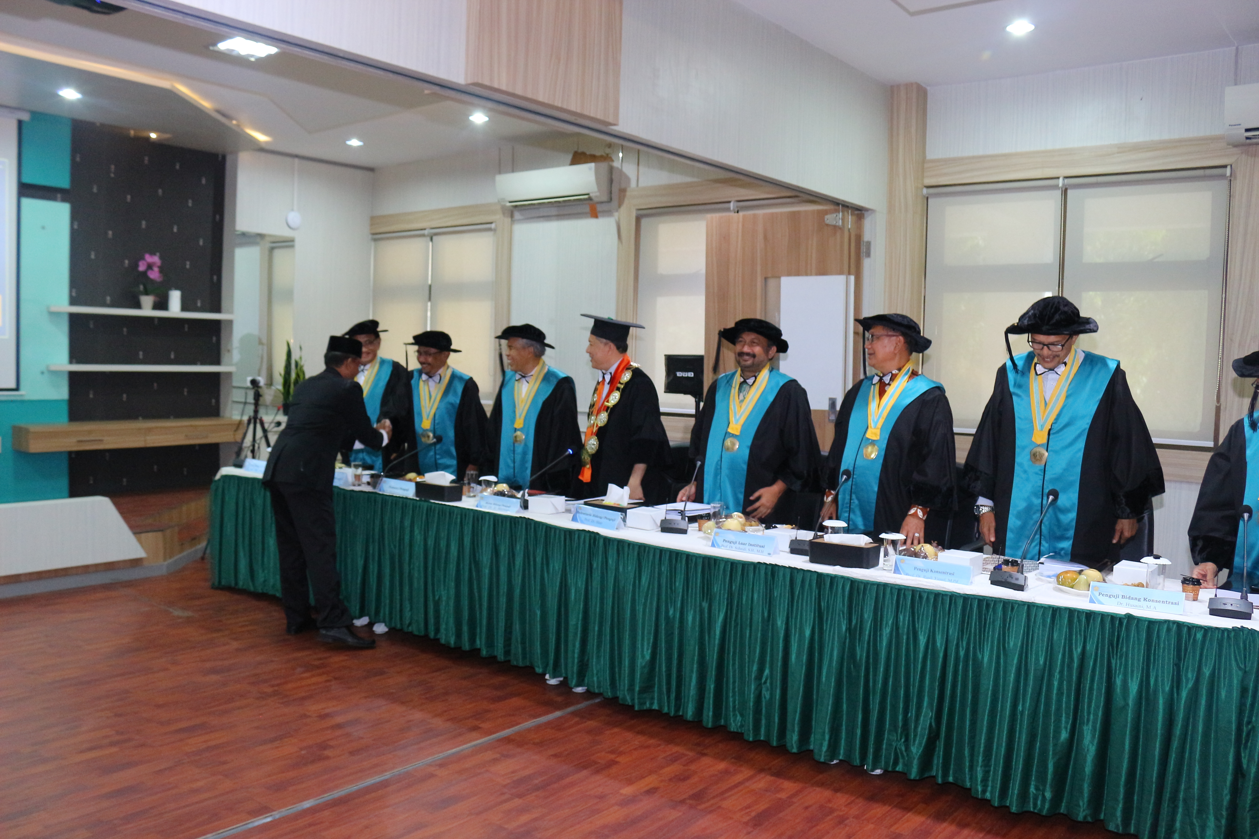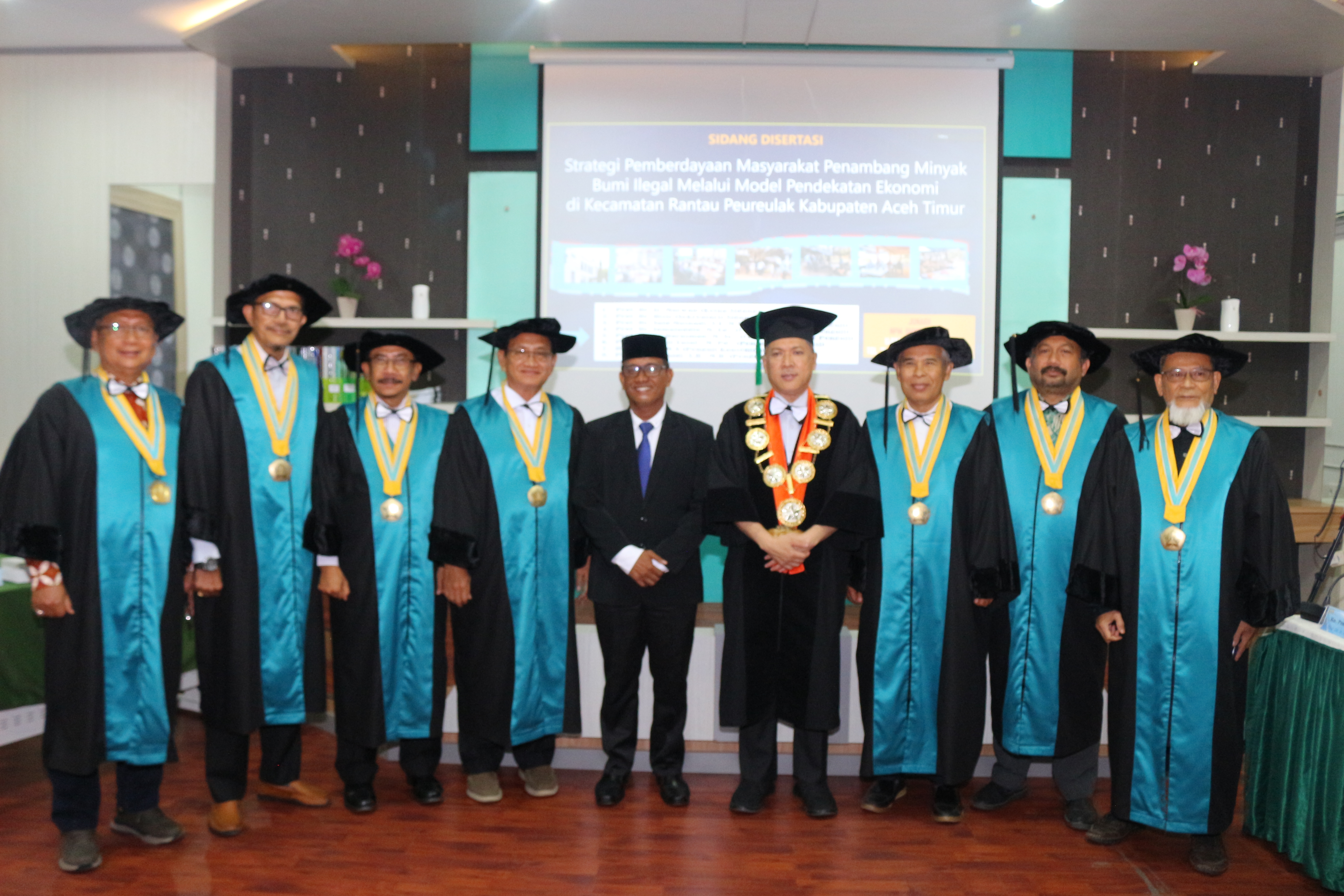 Ujian dipimpin Oleh Prof. Dr. Ir. Marwan Rektor Universitas Syiah Kuala Sebagai Ketua Sidang, Prof. Dr. Hizir, Direktur Sekolah Pascasarjana selaku Sekretaris Sidang , Prof.Dr. Said Musnadi, S.E, M.Si Selaku Promotor Utama, Prof. Dr. Jamaluddin, M.Ed. Sebagai Ko-Promotor 1,Prof. Dr. Ir. Darusman,M. Sc. selaku Ko-Promotor 2 dengan menghadirkan Prof. Dr. Rusli Yusuf, M. Pd., dan Dr.Husaini, MA. Selaku Penguji Bidang Kosentrasi dan Prof. Dr.Suhaidi Sebagai Penguji Luar Institusi dari USU.